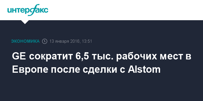 GE сократит 6,5 тыс. рабочих мест в Европе после сделки с Alstom