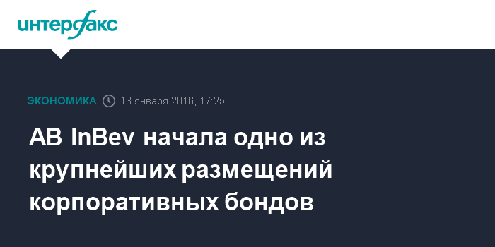 Москва. 13 января. INTERFAX.RU – Бельгийская пивоваренная компания AB InBev в среду начала одно из самых масштабных размещений корпоративных облигаций в истории рынка, чтобы профинансировать сделку по приобретению британской SABMiller, сообщает агентство Bloomberg со ссылкой на информированные источники.