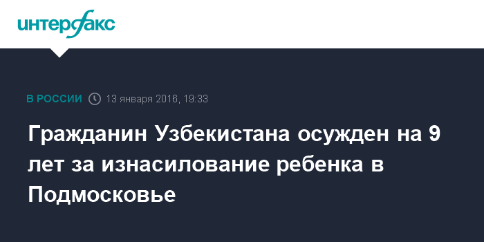 Гражданин Узбекистана осужден на 9 лет за изнасилование ребенка в Подмосковье