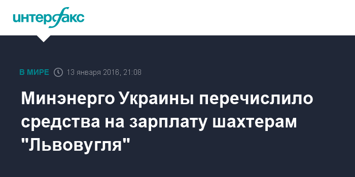 "В среду, 13 января, министерство энергетики и угольной промышленности Украины направило на счета ГП "Львовуголь" 20 млн грн", - говорится в сообщении Минэнерго на его официальной странице в фейсбуке в среду.