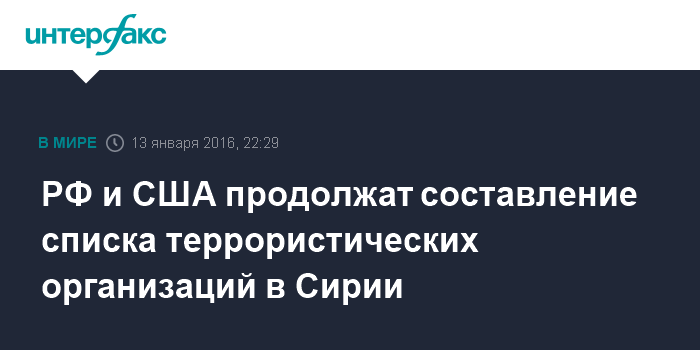 РФ и США продолжат составление списка террористических организаций в Сирии