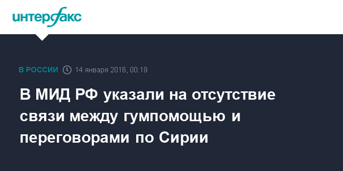 Москва. 14 января. INTERFAX.RU - Москва считает неправильным увязывать обеспечение доставки гумпомощи сирийцам с началом межсирийских переговоров, заявил замглавы МИД РФ Геннадий Гатилов.