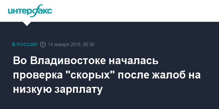 Москва. 14 января. INTERFAX.RU - Комплексная проверка началась на станции скорой медицинской помощи Владивостока после того, как в декабре водители машин "скорой" пожаловались на нарушение трудовых прав, сообщила в четверг пресс-служба администрации Приморского края.
