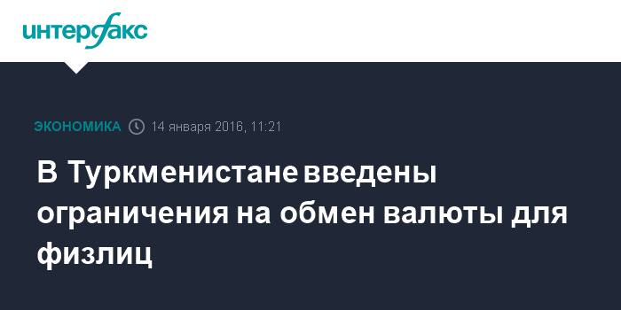 Москва. 14 января. INTERFAX.RU – Центральный банк Туркменистана предписал банкам страны прекратить для населения конвертацию национальной валюты - маната - в иностранную на наличном валютном рынке, сообщает туркменский информационный портал Turkmenportal.
