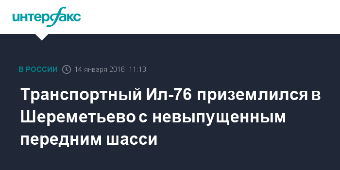 "Перед приземлением в "Шереметьево" у прибывшего из Ульяновска Ил-76 не вышла передняя стойка шасси, было принято решение об аварийной посадке, она прошла благополучно, никто из находившихся на борту не пострадал", - сказал собеседник агентства.