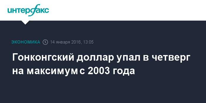 Москва. 14 января. INTERFAX.RU – Темпы падения курса гонконгского доллара к доллару США в четверг были максимальными с октября 2003 года в связи с ожиданиями отмены его привязки к американской нацвалюте и с утратой доверия к китайским активам, сообщает агентство Bloomberg.