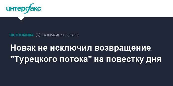 Москва. 14 января. INTERFAX.RU – Работа по проекту "Турецкий поток" может возобновиться в наступившем году, заявил министр энергетики РФ Александр Новак в интервью телеканалу "Россия 24".