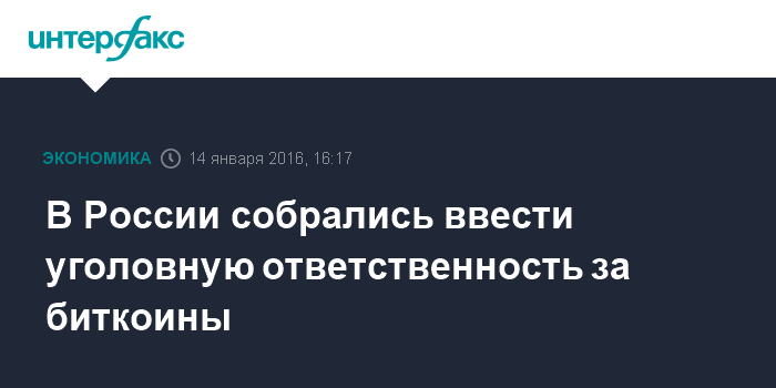Москва. 14 января. INTERFAX.RU – За оборот виртуальных криптовалют в России, возможно, будет установлена уголовная ответственность, сообщил глава Следственного комитета России Александр Бастрыкин.