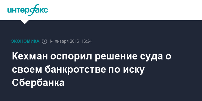 Кехман оспорил решение суда о своем банкротстве по иску Сбербанка