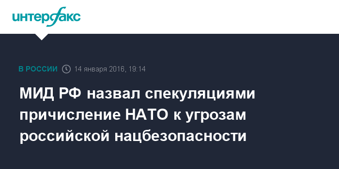 МИД РФ назвал спекуляциями причисление НАТО к угрозам российской нацбезопасности