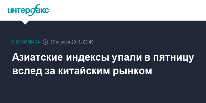 Москва. 15 января. INTERFAX.RU - Азиатские фондовые индексы падают в пятницу вслед за рынком акций КНР, сообщает агентство Bloomberg.