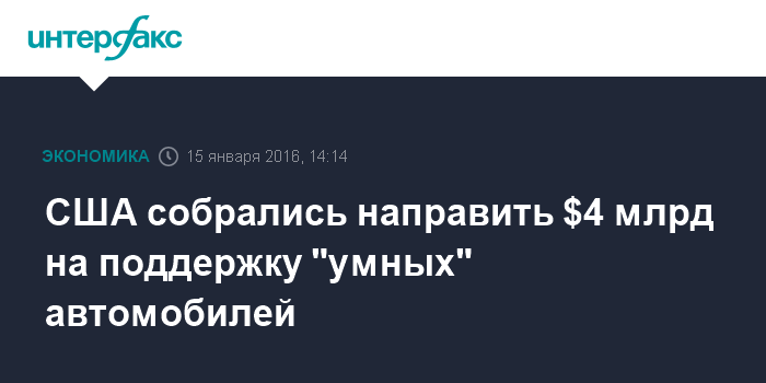 Москва. 15 января. INTERFAX.RU – Правительство США выступило с предложением выделить $3,9 млрд в течение 10 лет на разработку правил, позволяющих автомобилям ездить без водителей, пишет The Wall Street Journal. Прежде чем средства будут выделены из бюджета, предложению предстоит получить одобрение Конгресса.