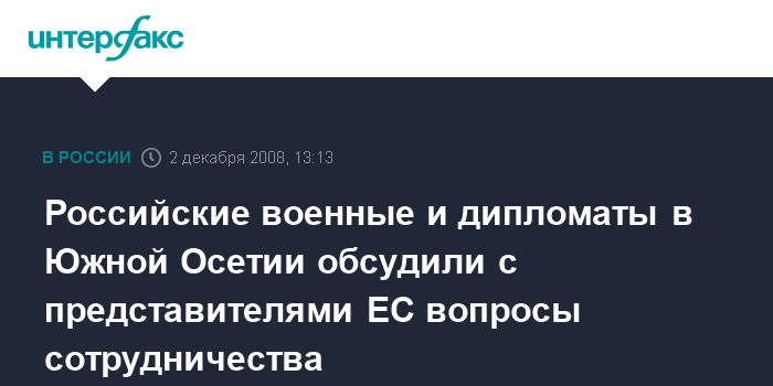 Москва. 2 декабря. INTERFAX.RU - Представители рабочей группы Минобороны и МИД РФ встретились во вторник в населенном пункте Эргнети (Южная Осетия) с представителями мониторинговой миссии Евросоюза в Грузии, сообщил "Интерфаксу-АВН" заместитель главнокомандующего Сухопутными войсками генерал-лейтенант Валерий Евневич.