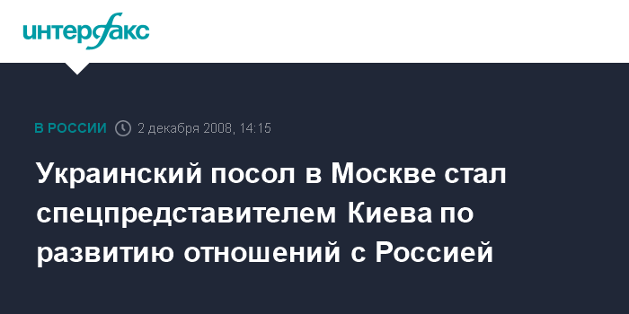 Москва. 2 декабря. INTERFAX.RU - Украинский посол в России Константин Грищенко назначен специальным представителем Украины по развитию отношений с РФ.
