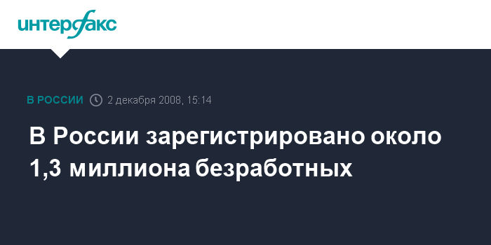 "На конец ноября 2008 г. численность безработных граждан, зарегистрированных в органах службы занятости, составила 1 миллион 293 тысяч человек. За аналогичный период прошлого года - 1 миллион 498 тысяч человек", -говорится в сообщении.