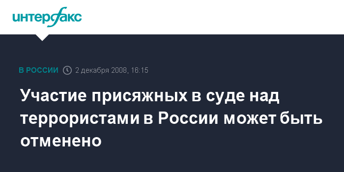 Москва. 2 декабря. INTERFAX.RU - Комитет Госдумы по безопасности рекомендовал принять в первом чтении законопроект, предусматривающий отмену участия присяжных заседателей в ходе судебных заседаний, рассматривающих дела о тяжких и особо тяжких преступлениях террористического характера.