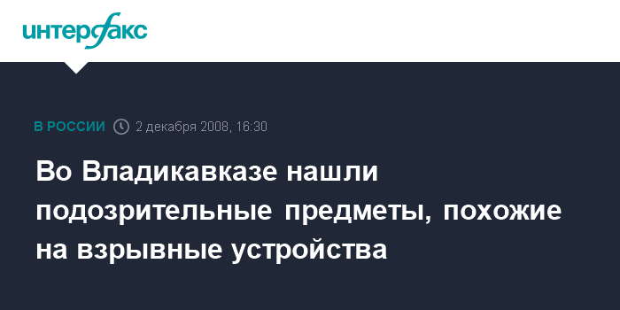 Москва. 2 декабря. INTERFAX.RU - Во Владикавказе возле префектуры Иристонского муниципального округа сотрудники правоохранительных органов проверяют подозрительный предмет, похожий на взрывное устройство.