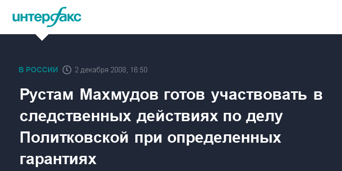 Рустам Махмудов готов участвовать в следственных действиях по делу Политковской при определенных гарантиях