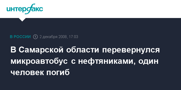 Москва. 2 декабря. INTERFAX.RU - Микроавтобус с четырнадцатью нефтяниками ОАО "Сургутнефтегаза" перевернулся в Самарской области, один человек погиб, семеро госпитализированы.
