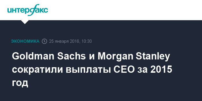 Москва. 25 января. INTERFAX.RU – Goldman Sachs и Morgan Stanley сократили годовые выплаты своим руководителям, поскольку падение рынков оказало негативное влияние на прибыли американских банков в 2015 году, пишет The Wall Street Journal.