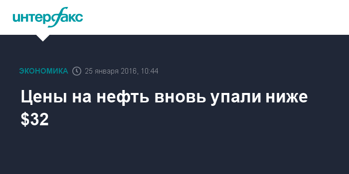 Цены на нефть вновь упали ниже $32