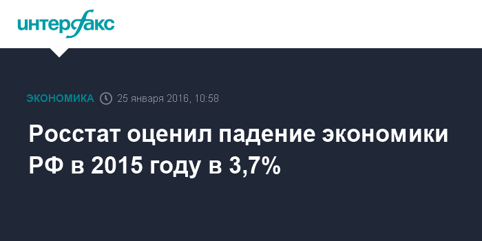 Москва. 25 января. INTERFAX.RU – ВВП России в 2015 году упал на 3,7%. Такую предварительную оценку опубликовал в понедельник Росстат.