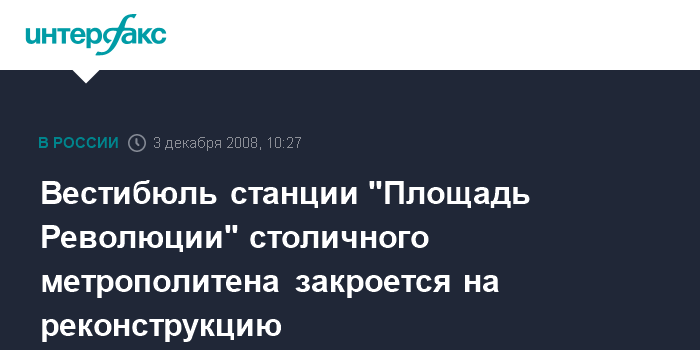 Москва. 3 декабря. INTERFAX.RU - Восточный вестибюль станции "Площадь Революции" Арбатско-Покровской линии столичного метро, имеющий выход на Никольскую улицу и Богоявленский переулок, с 8 декабря закрывается на реконструкцию и замену эскалаторов, сообщили "Интерфаксу" в пресс-службе метрополитена в среду.