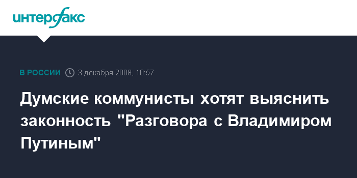 Москва. 3 декабря. INTERFAX.RU - Коммунисты хотят выяснить, соответствует ли намеченный на 4 декабря "Разговор с Владимиром Путиным" - общение премьер-министра, лидера партии "Единая Россия" с гражданами - Конституции.