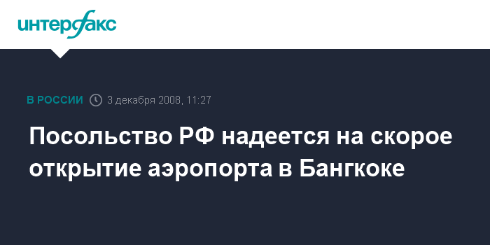 Москва. 3 декабря. INTERFAX.RU - Посольство России в Бангкоке рассчитывает, что международный аэропорт "Суварнабхум" откроется для пассажирских рейсов ранее заявленного тайландскими властями срока 15 декабря.