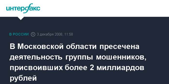 "Следствием доказано, что только на территории Московского региона мошенники присвоили более 2 млрд рублей", - говорится в сообщении пресс-службы ГУВД Московской области, размещенном в среду на официальном сайте МВД России.