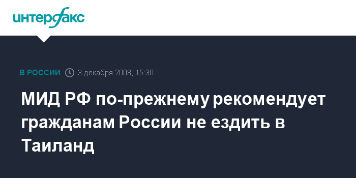 Москва. 3 декабря. INTERFAX.RU - МИД России оставляет в силе свою рекомендацию российским гражданам воздерживаться от поездок в Таиланд.