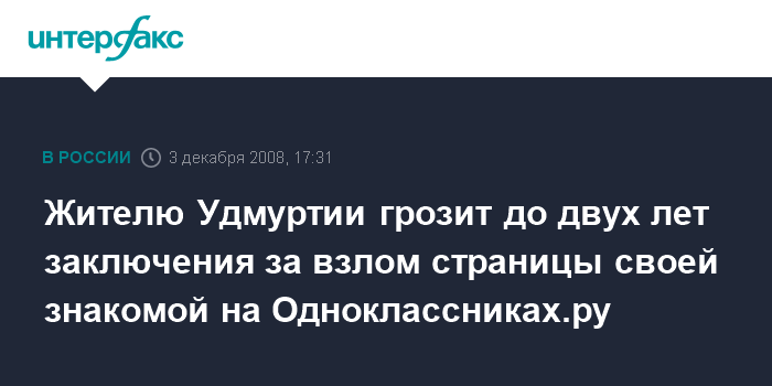 Жителю Удмуртии грозит до двух лет заключения за взлом страницы своей знакомой на Одноклассниках.ру