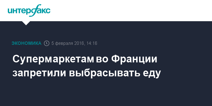 Москва. 5 февраля. INTERFAX.RU – Французский сенат в четверг единогласно принял закон, запрещающий супермаркетам страны выкидывать или утилизировать нераспроданные продукты питания до окончания срока годности, сообщает The Guardian.