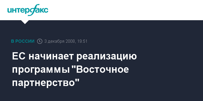 Москва. 3 декабря. INTERFAX.RU - Европейская Комиссия в среду объявила о старте программы "Восточное партнерство", в рамках которой планируется развивать отношения с восточными соседями, в частности, с Арменией, Азербайджаном, Грузией, Молдавией и Украиной.