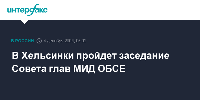Российский дипломат в интервью, опубликованном на сайте МИД РФ, уточнил, что заседание пройдет в финской столице 4-5 декабря. Делегацию России возглавит глава МИД РФ Сергей Лавров.