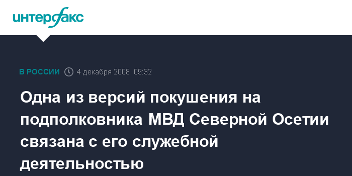 Москва. 4 декабря. INTERFAX.RU - По факту покушения на начальника отдела по расследованию тяжких преступлений оперативно-розыскной части МВД Северной Осетии подполковника Аслана Качмазова, получившего накануне тяжелые огнестрельные ранения, возбуждено уголовное дело.