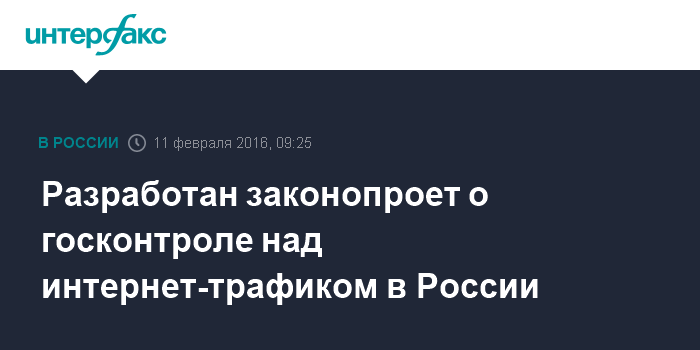 Москва. 11 февраля. INTERFAX.RU - Минкомсвязи разработало законопроект о государственном контроле над прохождением интернет-трафика на территории России, пишет газета "Ведомости". Как уточняется, это следует из пояснительной записки к документу.