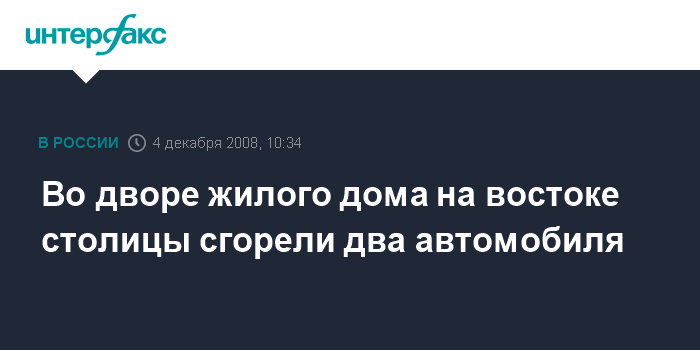 Москва. 4 декабря. INTERFAX.RU - В Восточном округе Москвы во дворе жилого дома в среду сгорели два автомобиля "Ниссан Кашкай" и "Мицубиси L200", сообщил "Интерфаксу" источник в правоохранительных органах в четверг.