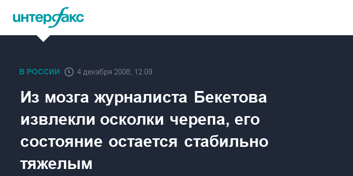 Из мозга журналиста Бекетова извлекли осколки черепа, его состояние остается стабильно тяжелым