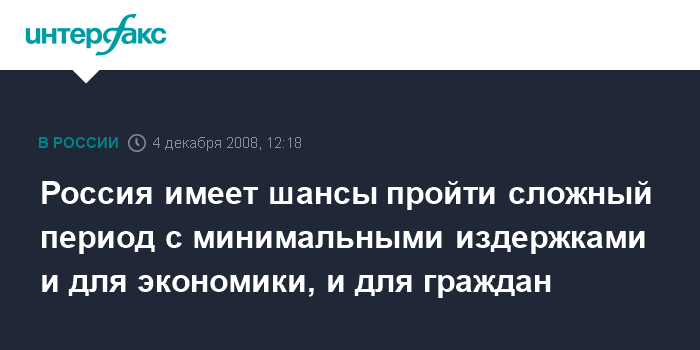 Россия имеет шансы пройти сложный период с минимальными издержками и для экономики, и для граждан