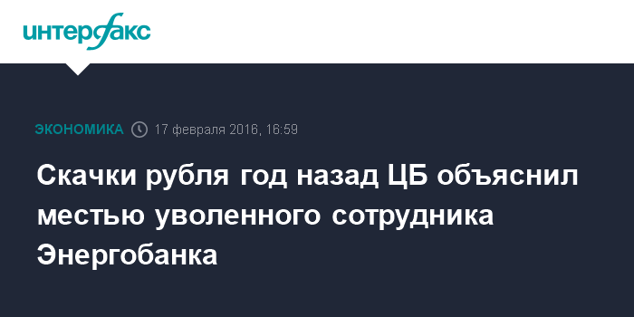 Скачки рубля год назад ЦБ объяснил местью уволенного сотрудника Энергобанка
