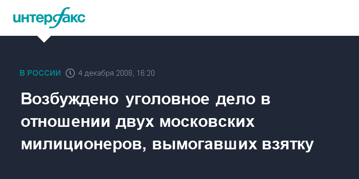 Возбуждено уголовное дело в отношении двух московских милиционеров, вымогавших взятку