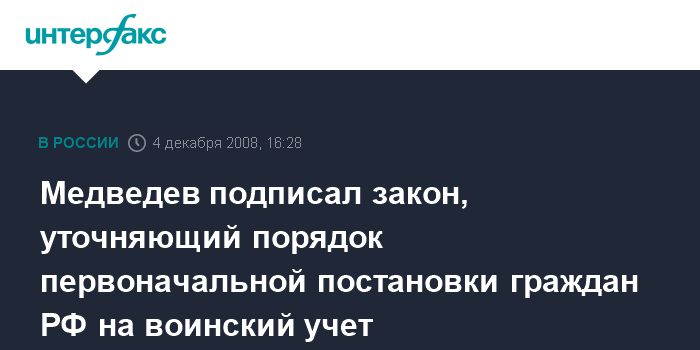 Медведев подписал закон, уточняющий порядок первоначальной постановки граждан РФ на воинский учет