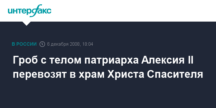 Москва. 6 декабря. INTERFAX.RU - Гроб с телом патриарха Алексия II в 17:50 вывезли на катафалке из патриаршей резиденции в Переделкино, где он скончался на 80-м году жизни накануне утром.