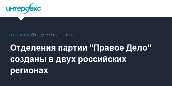 Отделения партии "Правое Дело" созданы в двух российских регионах