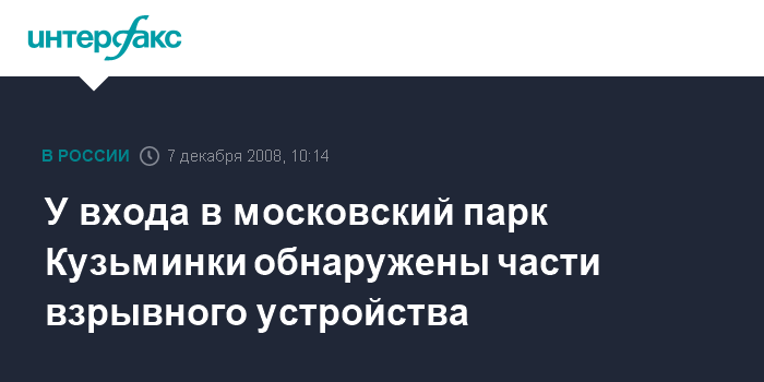 У входа в московский парк Кузьминки обнаружены части взрывного устройства