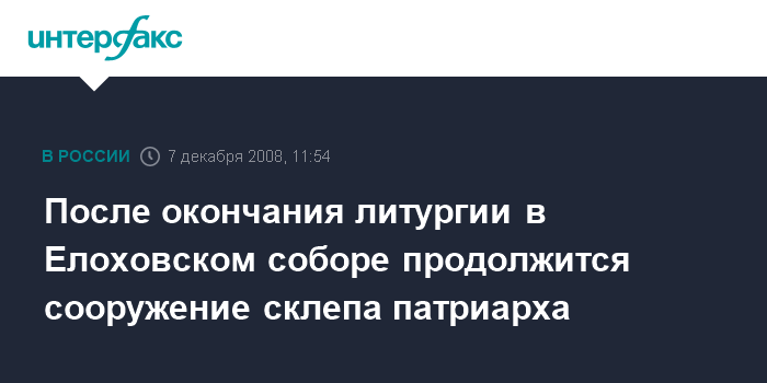 Как сообщает корреспондент "Интерфакса", по окончании службы в Елоховском соборе будет продолжено сооружение склепа для погребения гроба с новопреставленным патриархом Московского и всея Руси Алексием II.