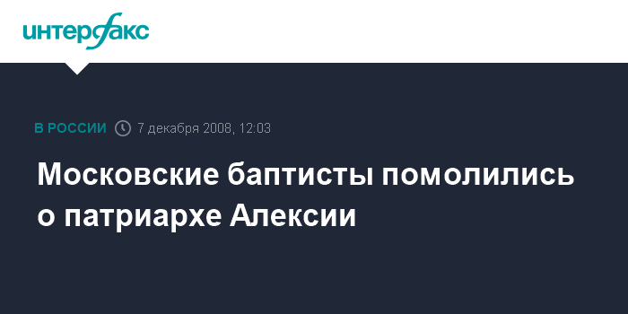 Москва. 7 декабря. INTERFAX.RU - В московской центральной церкви евангельских христиан-баптистов в воскресенье утром прошло богослужение памяти патриарха Алексия II.