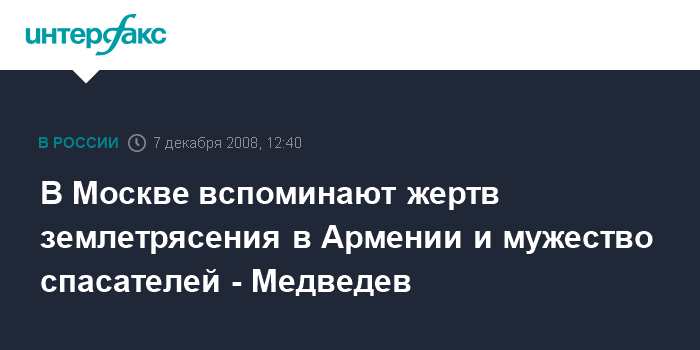 В Москве вспоминают жертв землетрясения в Армении и мужество спасателей - Медведев