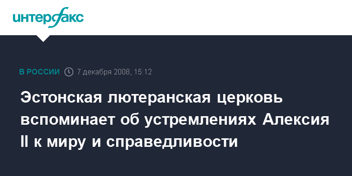 Эстонская лютеранская церковь вспоминает об устремлениях Алексия II к миру и справедливости